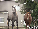 馬の耳が後ろ向きに寝るのは、警戒のサイン。