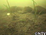 赤潮防止に設置したアマモイカダの中では、アマモが順調に生長を見せ、アオタナゴが寄り添うように泳いでいた。