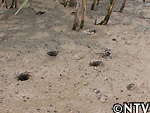 しかし、DASH海岸では、川などの淡水からの土砂の供給が乏しく、シルトなどの泥が溜まりにくい為、ヤマトオサガニが棲みつける環境がない。 |