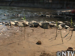 この竹筒に栄養豊富な赤潮の混じった汽水が流れれば土が撹拌され、空気が混ざることで土も柔らかくなるはず。