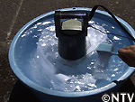 実はこの道具、タライの中に置くのは、城島の読み通り。 |