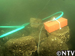 アマモを絶やさぬため、6個のマイクロバブル発生器を設置する。