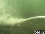 その効果は、早くも翌日に現れはじめ、細かい霧の下では元気に泳ぐコトヒキの姿や、水管から水を吐き出すアサリの姿が。