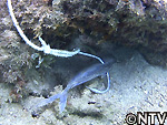 まずは金城さん、続いて潜りが得意な松岡が、置き針のある4mの海底へ。 |
