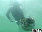 彼らといえば、ぷくっと膨らんで手のひらサイズのイメージだが、奄美ではハリセンボンの中でも最大級の“ネズミフグ"など、70cm7kgに及ぶ大物が見られるという。