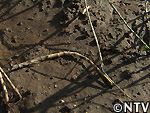 ヨシを支える地下茎がしっかりと根付いていた為、最悪の事態は避けられたが、順調に育っていた群れは、41本中3本が流出し、10本の茎が折れ曲がってしまった。 |