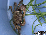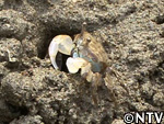 更に、土を掘ってみると、8月多摩川のヨシ原でも見たチゴガニを発見。