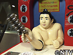 投げたボールがお腹に当たると、センサーが感知し、迫力の声を上げる。