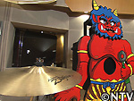 上下する鬼の手でシンバルを叩くことで、音を奏でる。
