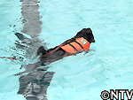 泳ぎが得意な本来のラブラドールのように泳いでいるノアール。
