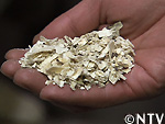 95℃の熱風で2時間かけて乾燥され、ローラーで粉砕されした後、チップ状の荒粉となる。 |