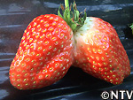 収穫するイチゴを見ていくと、2つが1つになっているような特大なイチゴが多く見られる。