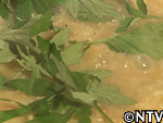 鍋のシメは残った汁に、ご飯とフーチバー(よもぎ)を加え、フーチバージューシー(よもぎ雑炊)。