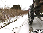 山道を抜けた道子馬車は、むつ市内の除雪された車道へ。