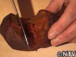 干し柿を3日間ほど燻し小屋で燻したものという。
