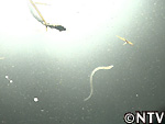 シラスウナギ用集魚灯を見つめていると、シラスウナギの姿が! |