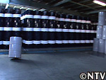 1万本が保管された倉庫では、ドラム缶を積むのは手作業。