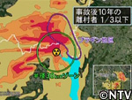 事故から10年後の統計でも人口が1/3程度しか減っていないが、30kmの立ち入り禁止区域にも隣接する、汚染度の高い地域。