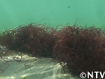 さらに、沖合50m地点の潮間帯で砂をかくと、網にかかったのはオゴノリ。