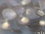 湖面に開けた1m四方の穴の中に、先端にカゴのついた長さ約10mの「鋤簾」を水深1.8mの湖底まで沈め、鋤簾をロープで巻き上げ、しじみを掬い採る。貝殻と石の中に混じって、採れたのは大和しじみ。