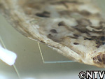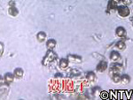 落下試験の結果を確かめるため、ガラス板を顕微鏡で見てみると、殻胞子がびっしりと。