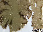 結果、木ヒビに計15枚、竹ヒビに2枚、計17本のノリの葉状体を発見。