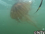 体には、赤いラインが走り、50cm程の長い触手が特徴的なこのクラゲは、強い毒を持ち、刺されると火傷のような痛みに襲われ、時には呼吸困難に陥ることも。 |