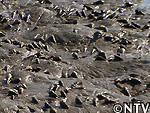 干潟一面を覆い隠すほどの巻き貝は、干潟の重要性を保つ大事な存在。 |