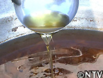 肝臓の油成分が溶け出し、黄金に輝くサメの“肝油"となる。