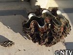 普段岩に根付いているシャコガイ、まずは、貝の口に棒を刺し刺激を与え、根を岩からはずす。