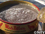 開始2分で三人、やっと缶を開け終わり、ここからニシンの身を食べる。
