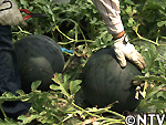 さっそく、お手伝いをすることとなったが、この時点で重さが7kg前後のスイカの玉返しは腰にきく。