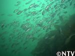 海底の岩は、様々な海藻に覆われ、そこに身を潜めるように、美しい模様のキヌバリや、ウマヅラハギ、メバルの赤ちゃんの群れ。だが、