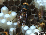 巣を割ってみると、一際大きな女王蜂を発見。