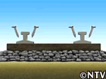 一般的な線路は、レールと枕木の下に、車両が走った際、クッションの役目を果たす砂利が敷き詰められている。