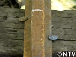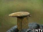 そこで犬釘打ち歴5年、鉄道マンの松木くんにお手本を見せてもらうと、25秒で打ち終わり、犬の頭は真っすぐレールに向いている。