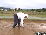 こうして再び、ふるさと福島の地に植えられた、TOKIOオリジナルの品種新男米。無事、実りの秋を迎えられるか? |