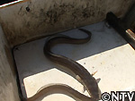 興奮して出すヌメリや触って出来る内出血はアナゴの味を落としてしまうため、捕まえたら元気なアナゴを手で触る事なく、水槽へ。 |