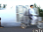 ペットボトルを落としながら、左右に振られ続け、振り落とされてしまい、ひざをこすりながら走行を続ける!