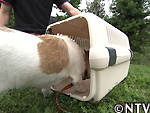 ハウスの中にご褒美を投げ入れて、中へ誘導。