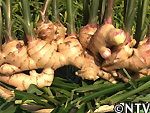 井上さん「8月の段階ではこのサイズ。ここら辺でも生姜が大きくなるのは、お盆過ぎで、9月の秋雨でグンーと伸びます」