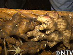 収穫したばかりの生姜と比べると、明らかに色が変わっていた。 |