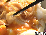 そして、炊きたてご飯に、オニオンスライスと温泉卵を上にかけて、地元ではよく食べられている“玉ねぎどんぶり"。