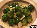 ニンニクとオリーブオイルで炒めた、芽キャベツのガーリックソテー。