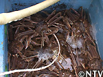 まずは、帰港したばかりの船の水槽にある越前ガニの水揚げ作業。