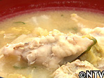 出荷作業も終えたところで、旅館も経営する中井さんからバイト代がわりに、トラフグのみそ汁が振る舞われる。
