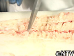 叩くことで、サメの身の中にあるスジを切らずに取り除くことができる。ちなみに、おでんの具でスジといえば牛スジだが、江戸時代のおでんはこのサメのスジで作られたものだったという。 |
