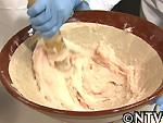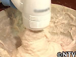 とは言うものの、さすがに大変なので、ハンドミキサーを使うことに。コツは、なるべく空気を含ませるように混ぜること。