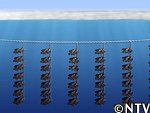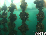 水中カメラを入れて見ると、ロープにカキがビッシリ。 |