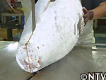 解体するのは、1本10万円にもなる大西洋産メバチマグロ。